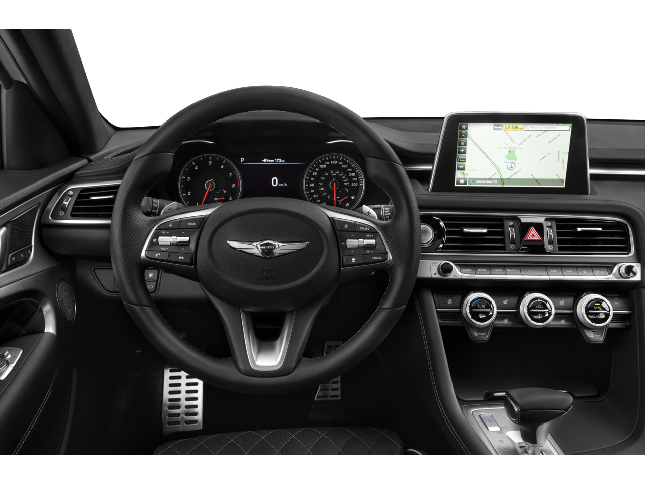 - Radio: AM/FM/HD Radio/SiriusXM Lexicon Audio -inc: 660-Watt, 8-inch 720P HD touchscreen display, integrated navigation, HD Traffic, 15-high-efficiency speakers including 2 subwoofers, 11-channel digital external amplifier, speed-sensing auto volume control, Bluetooth hands-free phone system, Android Auto, Apple CarPlay, 2 front USB ports, auxiliary input jack and Genesis Connected Services telematics