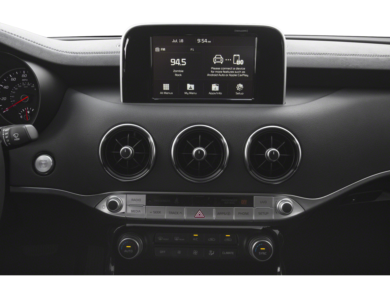 - Radio: AM/FM/MP3/HD/SiriusXM Audio System -inc: 7" color touch-screen display, 6 speakers, UVO eServices infotainment system, support for Android Auto and Apple CarPlay, USB input, Bluetooth® wireless connectivity, steering-wheel-mounted controls and voice recognition