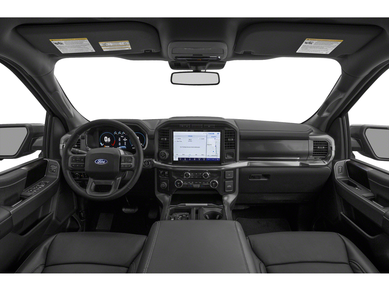 This car is well equipped with the following features: Equipment Group 500A Standard, FX4 Off-Road Package, 18 Machined-Aluminum Wheels, 4-Wheel Disc Brakes, 7 Speakers, ABS brakes, Adjustable pedals, Air Conditioning, Alloy wheels, AM/FM radio: SiriusXM with 360L, Auto High-beam Headlights, Auto-dimming door mirrors, Auto-dimming Rear-View mirror, Automatic temperature control, Brake assist, Bumpers: chrome, Class IV Trailer Hitch Receiver, Compass, Delay-off headlights, Driver door bin, Driver vanity mirror, Dual front impact airbags, Dual front side impact airbags, Electronic Stability Control, Emergency communication system: SYNC 4 911 Assist, Exterior Parking Camera Rear, Front anti-roll bar, Front Center Armrest w/Storage, Front dual zone A/C, Front fog lights, Front reading lights, Front wheel independent suspension, Fully automatic headlights, Heated door mirrors, Heated front seats, Illuminated entry, Integrated Trailer Brake Controller, Leather-Trimmed 40/20/40 Front Seat, Low tire pressure warning, Memory seat, Navigation system: Connected Navigation (90-Day Trial), Occupant sensing airbag, Onboard 400W Outlet, Outside temperature display, Overhead airbag, Overhead console, Panic alarm, Passenger door bin, Passenger vanity mirror, Pedal memory, Power door mirrors, Power driver seat, Power passenger seat, Power steering, Power windows, Radio data system, Radio: AM/FM SiriusXM w/360L, Rear reading lights, Rear seat center armrest, Rear step bumper, Rear window defroster, Remote keyless entry, Security system, Speed control, Speed-sensing steering, Split folding rear seat, Steering wheel mounted audio controls, SYNC 4 w/Enhanced Voice Recognition, Tachometer, Telescoping steering wheel, Tilt steering wheel, Tough Bed Spray-In Bedliner, Traction control, Tray Style Floor Liner (47W), Trip computer, Turn signal indicator mirrors, Variably intermittent wipers, Ventilated front seats, and Voltmeter.