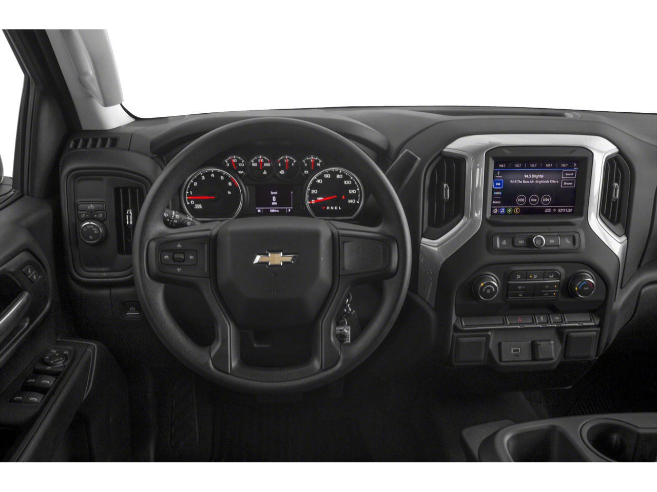 This car is well equipped with the following features: Custom Convenience Package (Electric Rear-Window Defogger, EZ Lift Power Lock & Release Tailgate, LED Cargo Area Lighting, Remote Vehicle Starter System, and Theft Deterrent System (Unauthorized Entry)), Custom Value Package, Infotainment Package (Chevrolet Connected Access Capable, OnStar & Chevrolet Connected Services Capable, SiriusXM Radio, and Wi-Fi Hot Spot Capable), Preferred Equipment Group 1CX (3.5 Monochromatic Display Driver Info Center, Bluetooth® For Phone, Body Color Grille, Color-Keyed Carpeting Floor Covering, Compass, Deep-Tinted Glass, Electronic Cruise Control, Front Rubberized Vinyl Floor Mats, Manual Tilt Wheel Steering Column, Power Door Locks, Power Front Windows w/Driver Express Up/Down, Power Front Windows w/Passenger Express Down, Power Rear Windows w/Express Down, Rear 60/40 Folding Bench Seat (Folds Up), Rear Rubberized-Vinyl Floor Mats, Remote Keyless Entry, and Standard Tailgate), Trailering Package (Hitch Guidance), 3.42 Rear Axle Ratio, 4-Wheel Disc Brakes, 40/20/40 Front Split Bench Seat, 6 Speakers, 6-Speaker Audio System, ABS brakes, Air Conditioning, Alloy wheels, AM/FM radio: SiriusXM, Apple CarPlay/Android Auto, Brake assist, Bumpers: body-color, Cloth Seat Trim, Delay-off headlights, Driver door bin, Driver vanity mirror, Dual front impact airbags, Dual front side impact airbags, Electronic Stability Control, Front anti-roll bar, Front Black Bowtie Emblem (LPO), Front Center Armrest w/Storage, Front License Plate Kit, Front reading lights, Front wheel independent suspension, Fully automatic headlights, Heated door mirrors, Heavy Duty Suspension, Illuminated entry, Low tire pressure warning, Occupant sensing airbag, Outside temperature display, Overhead airbag, Overhead console, Panic alarm, Passenger door bin, Passenger vanity mirror, Power door mirrors, Power steering, Power windows, Premium audio system: Chevrolet Infotainment 3, Radio data system, Radio: Chevrolet Infotainment 3 System, Rear reading lights, Rear step bumper, Rear window defroster, Remote keyless entry, Security system, Speed control, Speed-sensing steering, Split folding rear seat, Tachometer, Tilt steering wheel, Traction control, Trip computer, Variably intermittent wipers, Voltmeter, and Wheels: 20 x 9 Bright Silver Painted Aluminum.