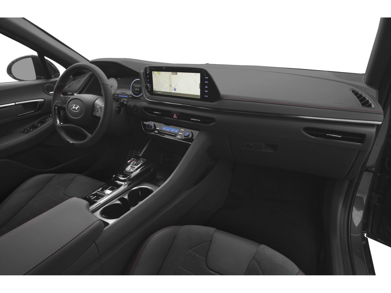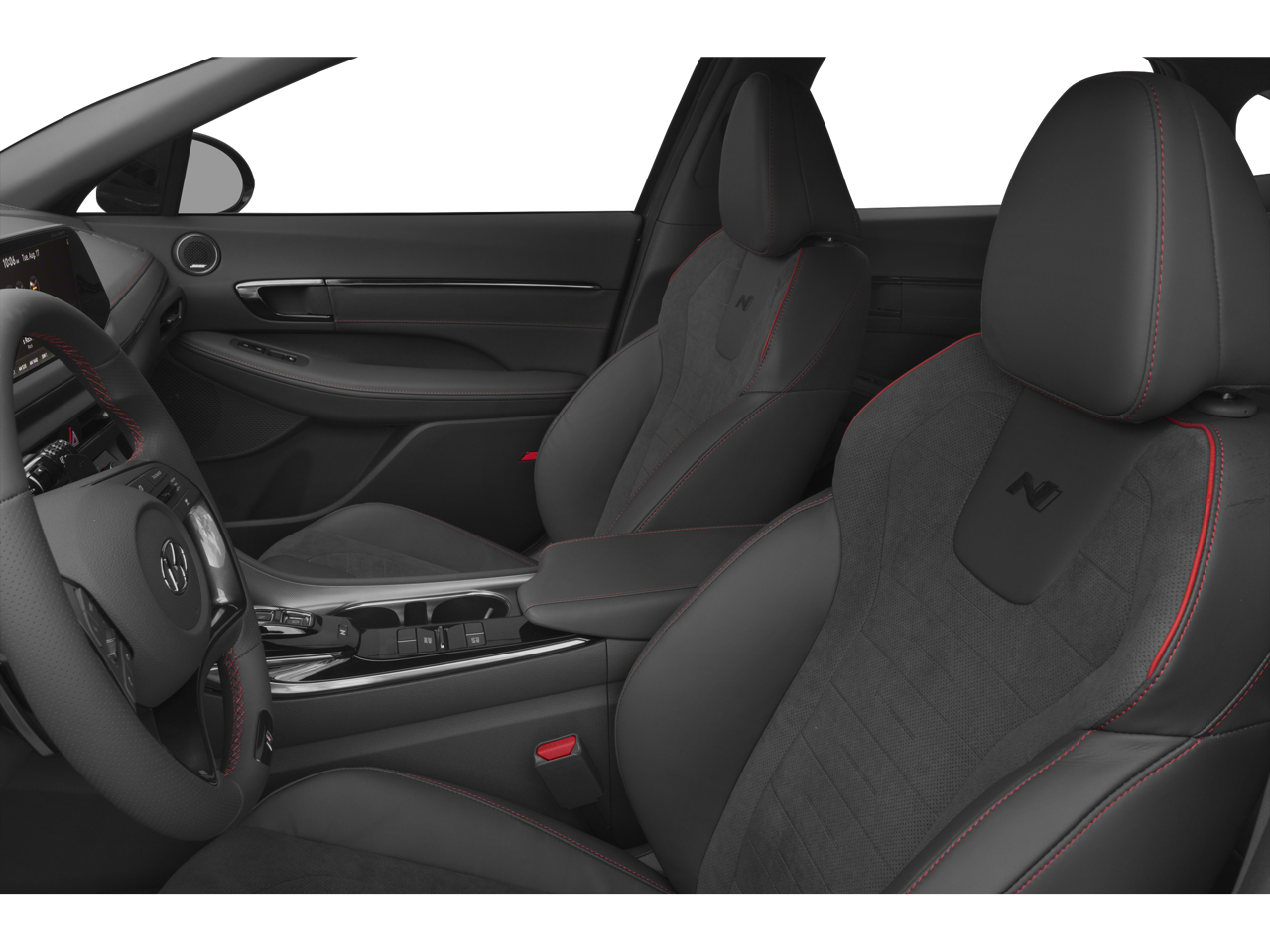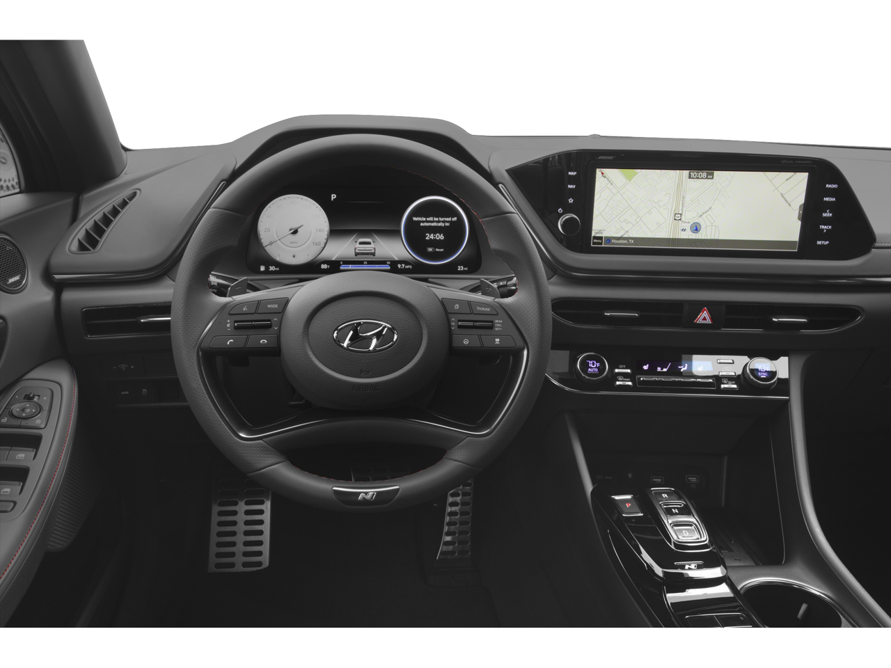 This car is well equipped with the following features: Option Group 01, Preferred Accessory Package (Cargo Block, Cargo Side Bins, and First Aid Kit), 12 Speakers, 4-Wheel Disc Brakes, ABS brakes, Air Conditioning, Alloy wheels, AM/FM radio: SiriusXM, Apple CarPlay & Android Auto, Auto High-beam Headlights, Auto-dimming Rear-View mirror, Automatic temperature control, Brake assist, Bumpers: body-color, Carpeted Floor Mats, Delay-off headlights, Driver door bin, Driver vanity mirror, Dual front impact airbags, Dual front side impact airbags, Electronic Stability Control, Emergency communication system: Blue Link Connected Car Service (3-year complimentary subscription), Exterior Parking Camera Rear, Four wheel independent suspension, Front anti-roll bar, Front Bucket Seats, Front Center Armrest, Front dual zone A/C, Front reading lights, Fully automatic headlights, Garage door transmitter: HomeLink, Heated door mirrors, Heated front seats, Heated N Unique Sport Seats, Illuminated entry, Knee airbag, Leather steering wheel, Low tire pressure warning, Nappa Leather Seating Surfaces, Navigation System, Occupant sensing airbag, Outside temperature display, Overhead airbag, Overhead console, Panic alarm, Passenger door bin, Passenger vanity mirror, Power door mirrors, Power driver seat, Power moonroof, Power steering, Power windows, Radio data system, Radio: AM/FM/MP3/HD/SiriusXM Display Audio w/Nav, Rear anti-roll bar, Rear seat center armrest, Rear side impact airbag, Rear window defroster, Remote keyless entry, Security system, Speed control, Speed-sensing steering, Speed-Sensitive Wipers, Split folding rear seat, Spoiler, Steering wheel mounted audio controls, Tachometer, Telescoping steering wheel, Tilt steering wheel, Traction control, Trip computer, Turn signal indicator mirrors, Variably intermittent wipers, Wheel Locks, and Wheels: N Unique 19 x 8.0J Alloy.
