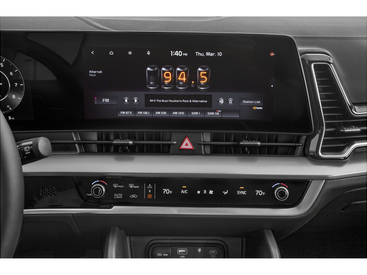 - Radio: AM/FM/HD Audio System -inc: 12.3" touchscreen w/navigation, 400 W w/HALOsonic harman/kardon sound system, 8 speakers including subwoofer, wired Apple Carplay and Android Auto, UVO telematics, voice recognition, SiriusXM, steering wheel mounted audio controls and Bluetooth phone and streaming audio